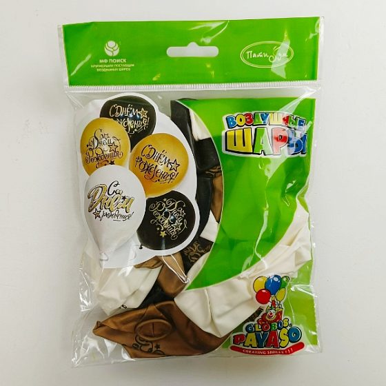 MP 12"/30см BLACK&GOLD&WHITE ассорти рис С Днем рождения 25шт