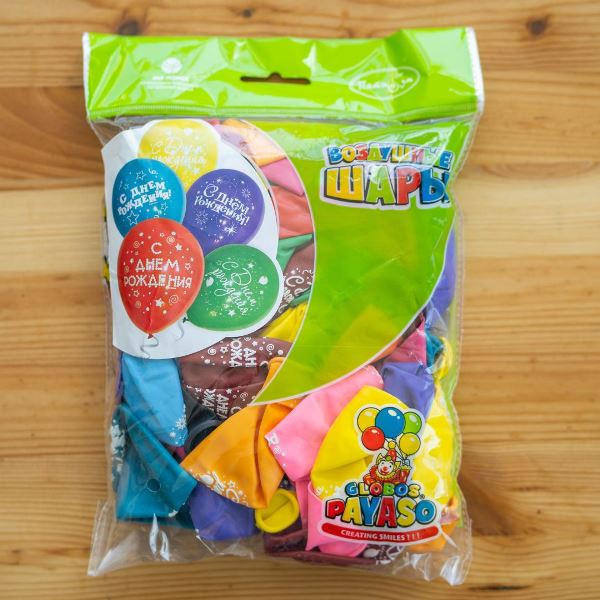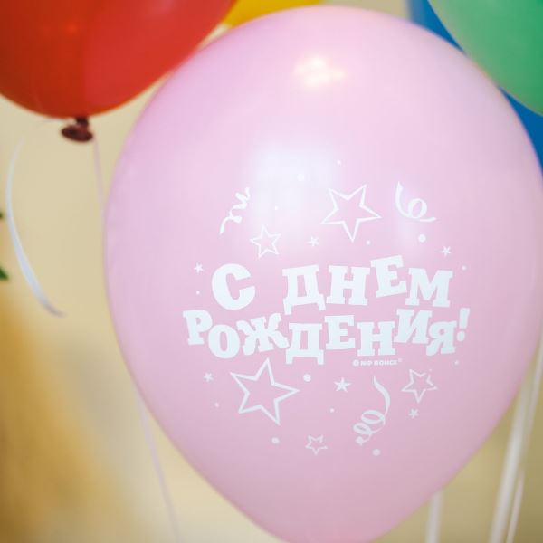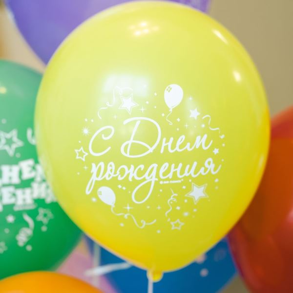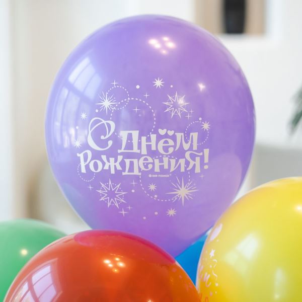 Воздушные шары Пастель+Декоратор (шелк) 2 ст. рис. С Днем Рождения Серпантин 50шт 12"/30см
