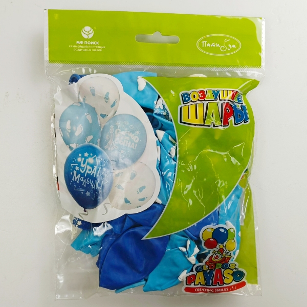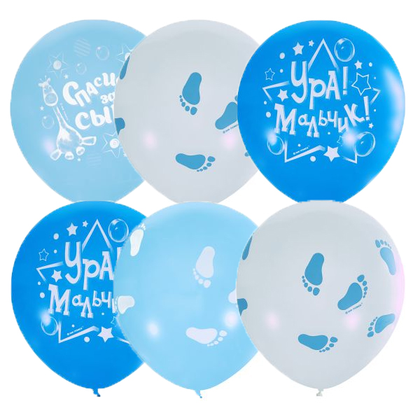Воздушные шары Пастель+Декоратор (шелк) ассорти рис. К рождению мальчика 25шт 12"/30см