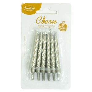 Свечи Серебряные с блестками с держателями 24(12+12) шт 6 см